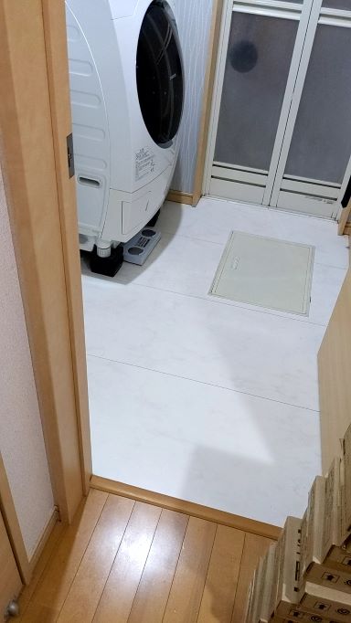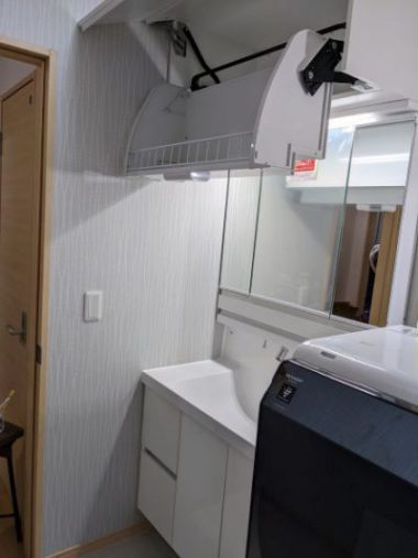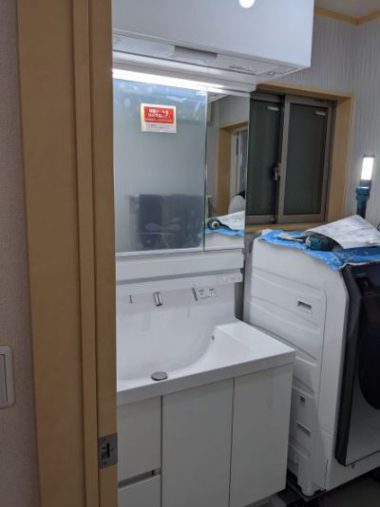 今回洗面台を75cmから90cmにして、洗濯機もサイズが大きくなりました。