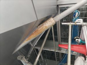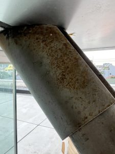 支柱の塗装・補修工事 お仕事 2025.09.012025.10.09 Post Views: 37 こんにちは! 今日から9月に入りましたが、まだまだ厳しい暑さが続いております。 皆さまも体調を崩されませんようご自愛ください! 本日は、ある公共施設の支柱の塗装・補修工事です。 支柱が錆びてしまっていますね。 まずは支柱を磨いて錆を取っていきます。 その後下地を塗っていきます! もともとの支柱の色に合わせて配合したものを吹いて完成です! 見違えるほどきれいになりました!