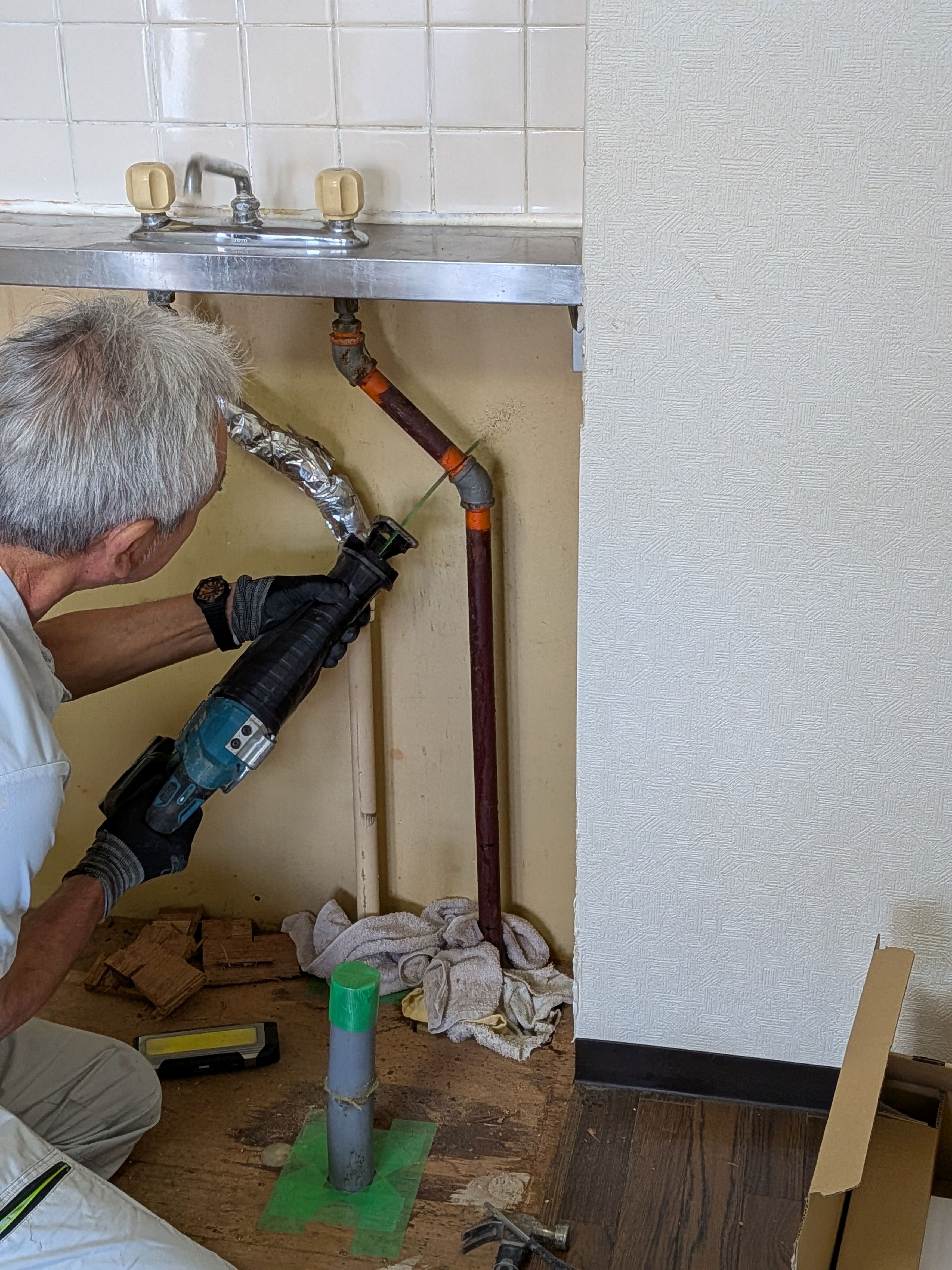 解体をしたところ、水洗もかなり錆びてしまっていたので、交換をしていきます。