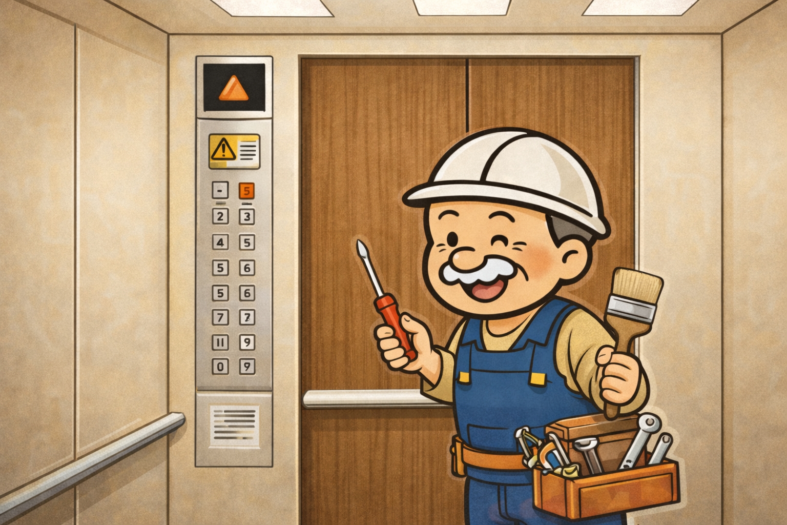 さて、本日はエレベーター内の扉補修のご紹介です!